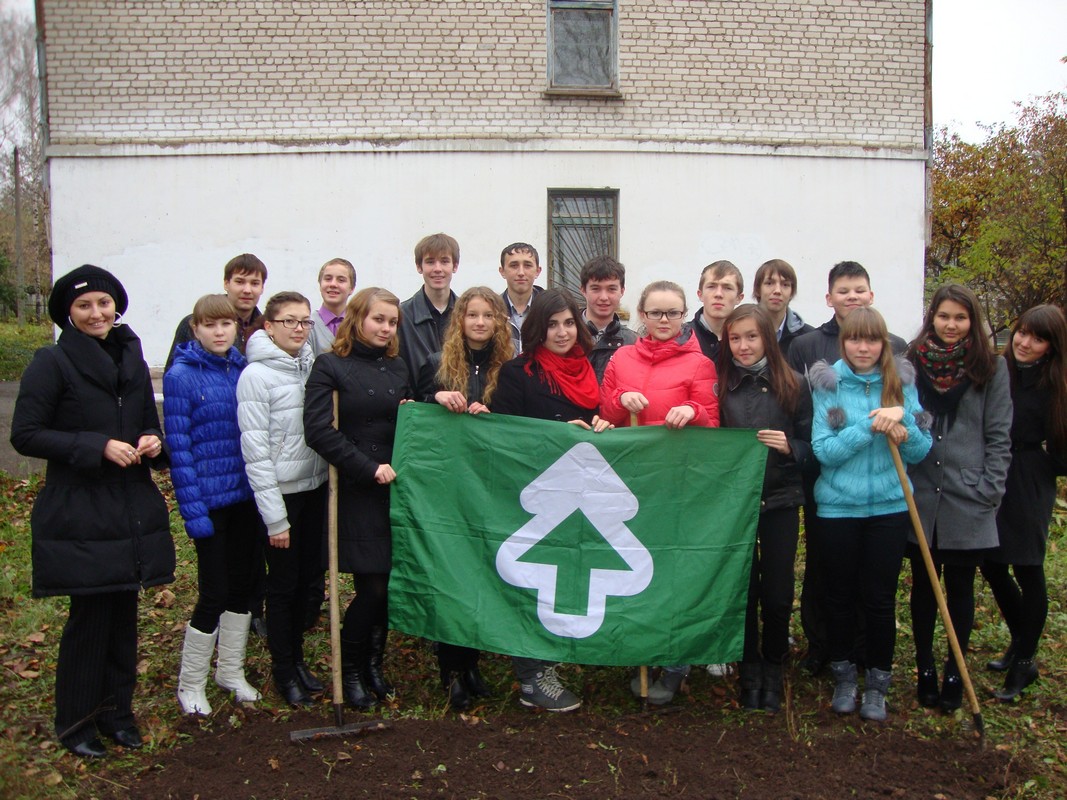 После встречи все дружно направились в школьный сад для посадки семян туи, ясени и тополя.