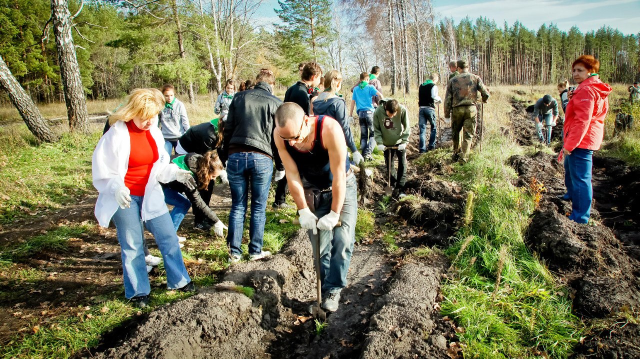 Пятый этап акции в Ульяновской области стартовал близ села Поникий Ключ, на территории Ульяновского лесничества. Первым высадился десант учеников Большеключищинской школы, одной из первых подключившихся к всероссийской акции, с подросшими за 2 года соснами и дубками.